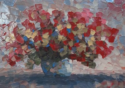 Je suis née au Québec en 1942. Autodidacte, j’ai développé une technique unique à l’aide de couteaux-palettes et de mon propre mélange de peinture. Mon art se caractérise par un lustre doux, une texture très épaisse, une sensation de spontanéité, une diversité dans les sujets et compositions et une harmonie de couleurs réconfortantes. Je suis devenu artiste à l’âge de 57 ans à Naples en Floride où je possédais une galerie d’art. En raison de difficultés financières, je ne pouvais plus acheter d’œuvres d’art ; ma seule façon de m’en sortir était de réaliser moi-même les tableaux.